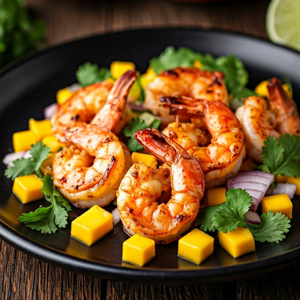 🥭 Grillowane krewetki z mango i kolendrą
