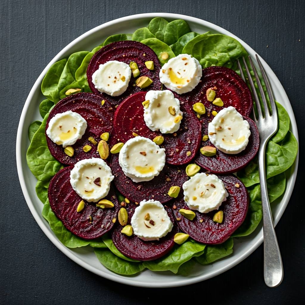Delikatna i elegancka sałatka inspirowana francuskim stylem bistro – łączy słodycz buraka z kremowym kozim serem i chrupiącymi pistacjami. Idealna na letnią kolację z lampką białego wina. 🍷🌿