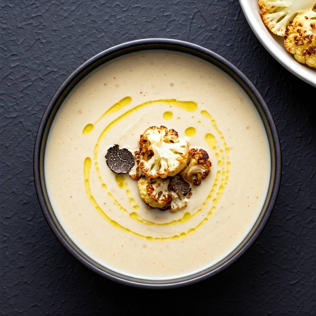Ta zupa to prawdziwa uczta dla zmysłów — pieczony kalafior zyskuje głęboki, orzechowy aromat, a dodatek parmezanu i oliwy truflowej podnosi danie do poziomu fine dining… w domowym wydaniu. Idealna na jesienne i zimowe wieczory, gdy chcesz otulić się smakiem.